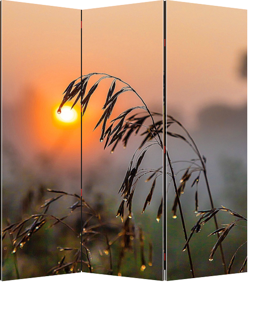 Ширма "Колос растения на фоне восходящего солнца с каплями росы"