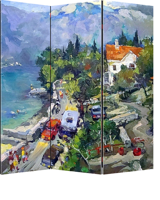 Описание ширмы Работа была написана во время международного пленэра в Черногории, на берегу Боко-Которского залива