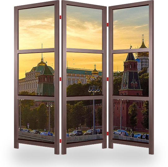 Описание ширмы Кремль -сердце Москвы. Кремль на закате это всегда красиво. Закат всегда притягивает фотографов, так как только на закате природа играет всеми своими красками