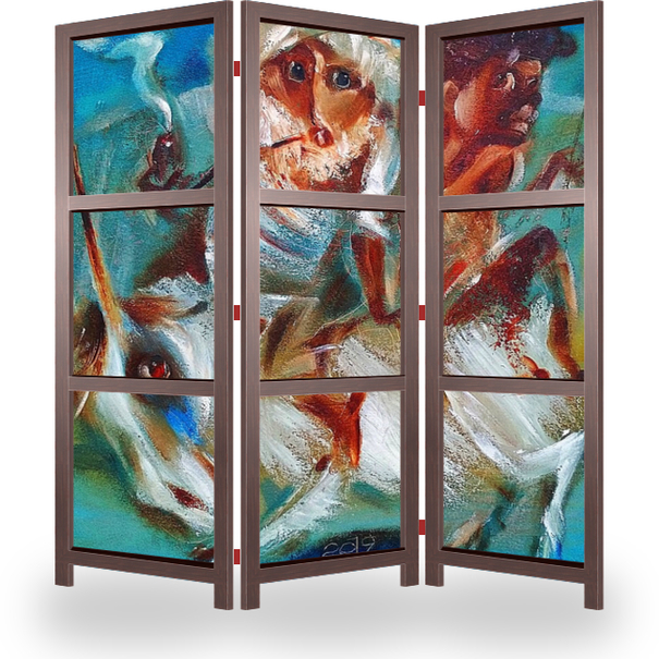 Описание ширмы Работа выполнена маслом на холсте, будет интересна поклонникам современной живописи. Прекрасно дополнит любой интерьер от офиса до жилого помещения. Станет отличным подарком любителям картин написанных в стиле авангард, поп-арт.