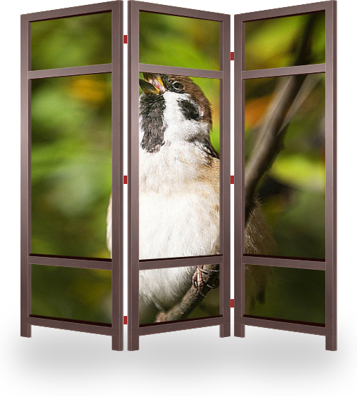 Описание ширмы Это только на первый взгляд может показаться, что птица воробей глупая и ни в чем не приметная. На самом деле, это достаточно интересное и одаренное пернатое. Из наблюдений эти постоянные соседи людей обладают превосходной памятью, строптивым задирис