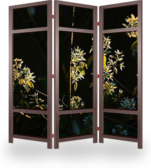 Описание ширмы Цветущая ирга в моем саду в лучах заходящего солнца. Погода класс, еще тепло, и гулять было одним удовольствием для искателя приключений и ценителя природы.