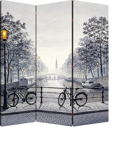 Описание ширмы Самая экстравагантная европейская столица, город каналов и запоминающихся мостов, прекрасных музеев и галерей, город велосипедов - автор любит бывать и рисовать этот свободный город.