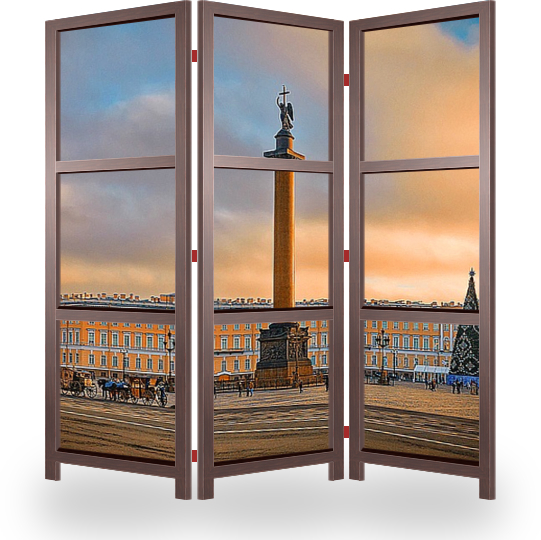 Ширма эконом отлично подойдет для временного размещения, рекламы, для отгораживания объектов интерьера и его дополнения. Лицевая сторона с изображением, обратная сторона открытый каркас