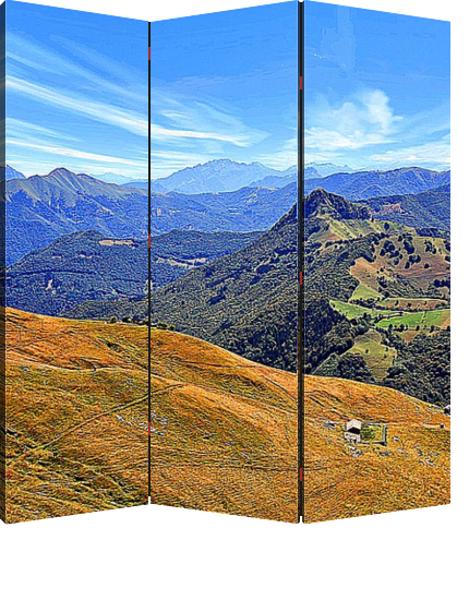 Описание ширмы Вид с горы Дженерозо в Швейцарии. Изумительно чистый воздух, простор, зеленые склоны гор. Незабываемые места.