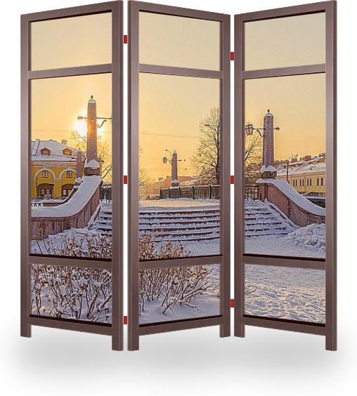 Ширма эконом отлично подойдет для временного размещения, рекламы, для отгораживания объектов интерьера и его дополнения. Лицевая сторона с изображением, обратная сторона открытый каркас