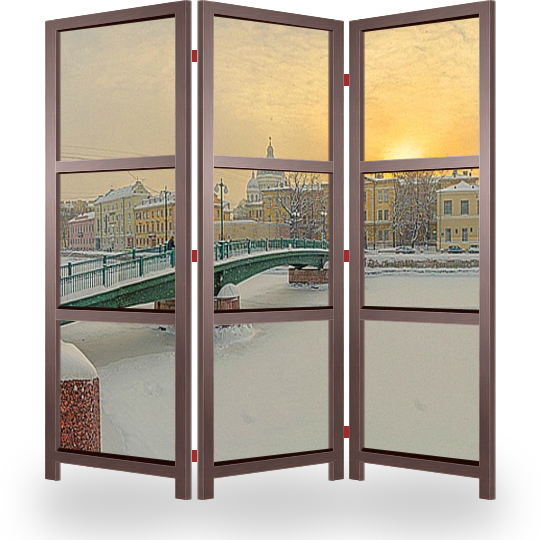 Ширма эконом отлично подойдет для временного размещения, рекламы, для отгораживания объектов интерьера и его дополнения. Лицевая сторона с изображением, обратная сторона открытый каркас