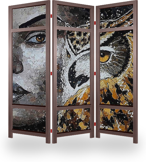 Описание ширмы картина написана мастихином на холсте. С помощью мастихина художник добился большой фактурности. размер 40 на 60 см