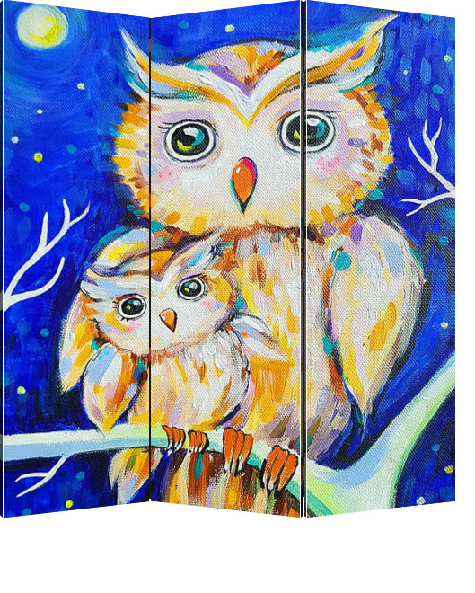 Описание ширмы Картина "Совы" станет чудесным украшением вашего интерьера, будь то гостиная, спальня, детская или офис. Картина будет радовать Вас и приносить удачу!