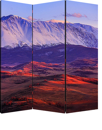 Описание ширмы Закат на горами золотого Алтая. Северо-Чуйский хребет, Алтай, сентябрь 2019