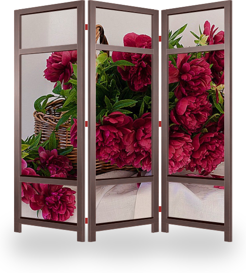 Описание ширмы Корзина,полная роскошных красных пионов.Весенний натюрморт.Такой постер может украсить любое помещение вашего дома, квартиры, офиса, отеля.