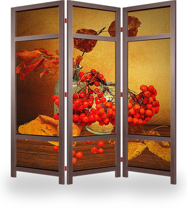 Описание ширмы Сегодня попытался сделать натюрморт и придумал композицию с гроздьями рябины.