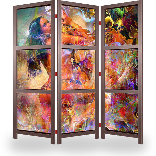 Описание ширмы Восхитительная модель, идеальная фигура и необыкновенная гибкость и пластичность. Фантазийный фон привносит динамичность и экспрессию