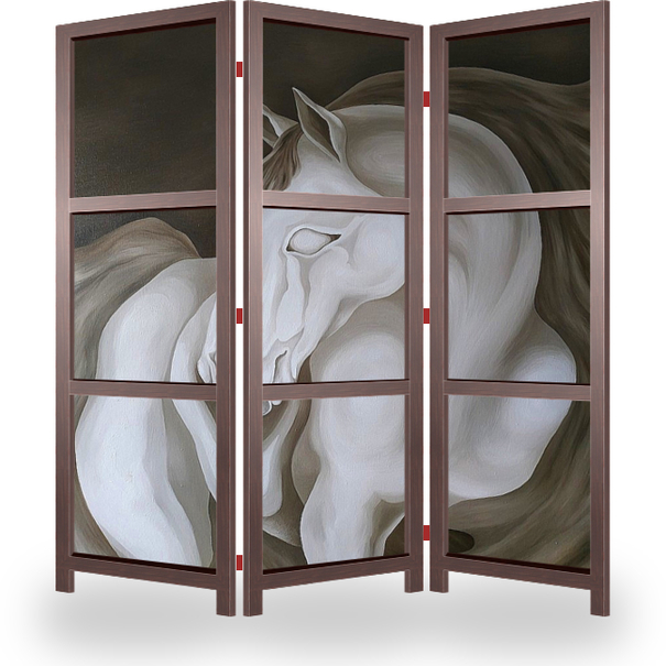 Описание ширмы «Иллюзорный конь — отражённое в облаках лунное сияние» холст / масло