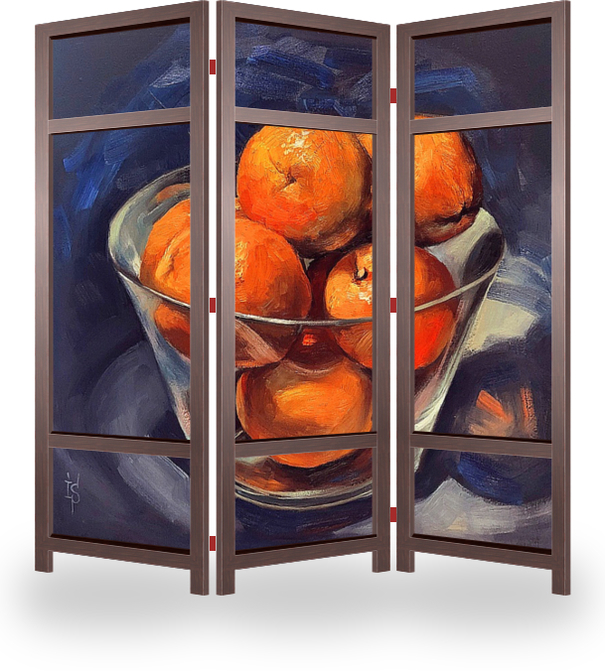 Описание ширмы Натюморт выполненный в технике "алла-прима", масло на льняном холсте, 60х60, 2019.