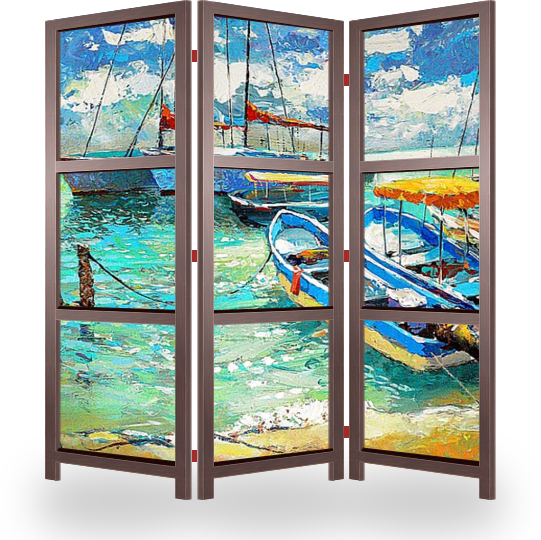Ширма эконом отлично подойдет для временного размещения, рекламы, для отгораживания объектов интерьера и его дополнения. Лицевая сторона с изображением, обратная сторона открытый каркас