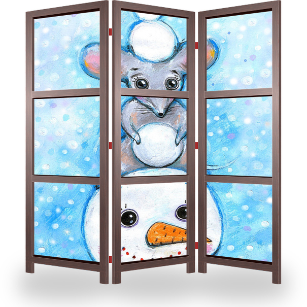 Описание ширмы Картина "Мышка и снеговик" станет чудесным украшением вашего интерьера, будь то гостиная, спальня, детская или офис. Картина будет радовать Вас и приносить удачу!