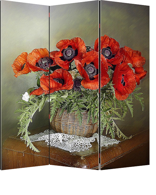 Описание ширмы Постер с роскошным букетом красных маков придаст ощущения уюта и летнего настроения в Вашем доме