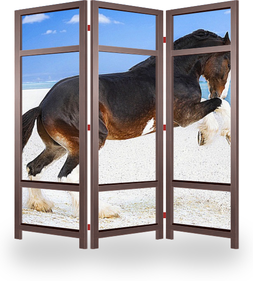 Описание ширмы Лошадь и море, что может быть прекраснее. Картина украсит офис, приемную, и любое другое помещение.