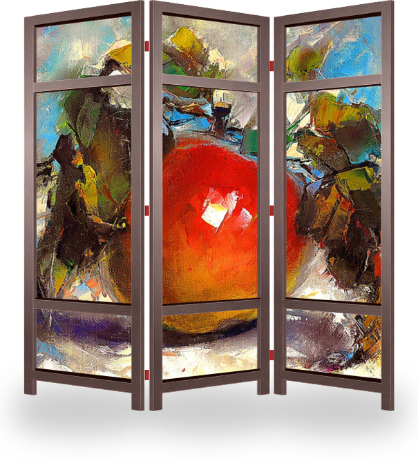 Описание ширмы Смачное вкусовое воздействие цвета. Картина написана в современной пастозной манере смелыми широкими мазками мастихина. Такоё наливное яблочко будет яркой "изюминкой" в интерьере столовой, гостиной или кухни.