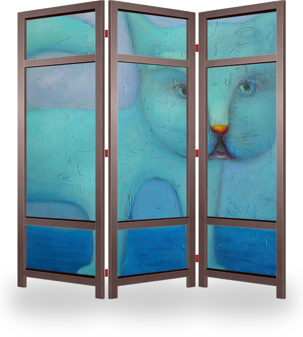 Описание ширмы Ощущение безмятежности, детскости, доброты, наивности и в тоже время мудрости и внутренней силы, в этих почти человеческих и голубых как неба глазах.