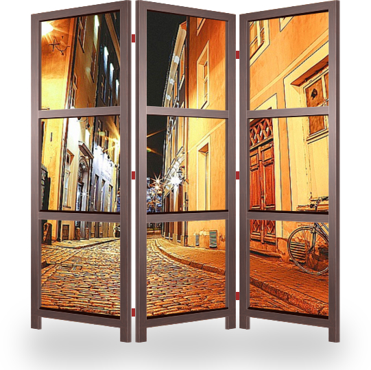 Ширма эконом отлично подойдет для временного размещения, рекламы, для отгораживания объектов интерьера и его дополнения. Лицевая сторона с изображением, обратная сторона открытый каркас