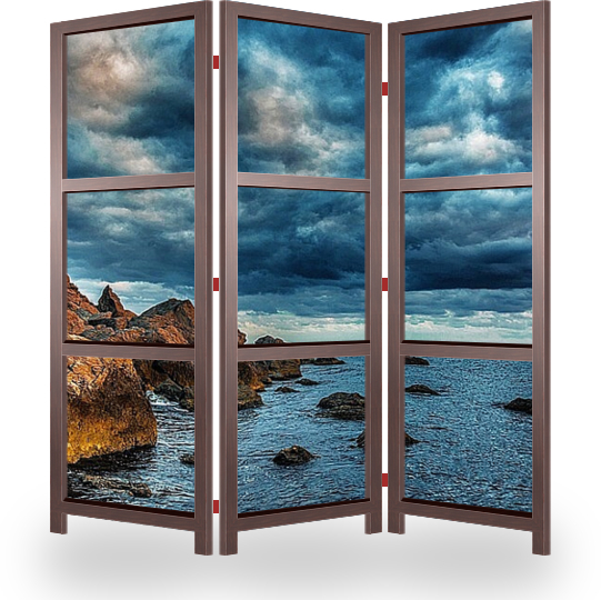 Ширма эконом отлично подойдет для временного размещения, рекламы, для отгораживания объектов интерьера и его дополнения. Лицевая сторона с изображением, обратная сторона открытый каркас