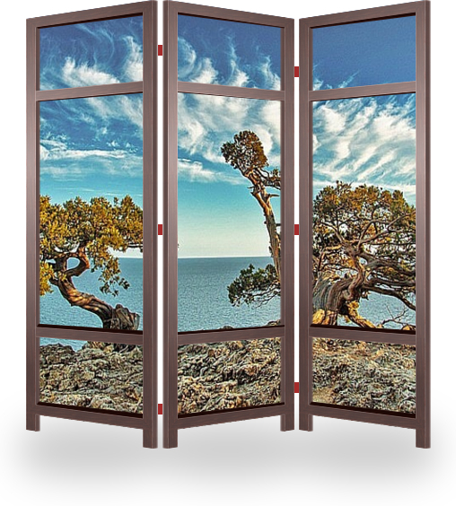 Ширма эконом отлично подойдет для временного размещения, рекламы, для отгораживания объектов интерьера и его дополнения. Лицевая сторона с изображением, обратная сторона открытый каркас