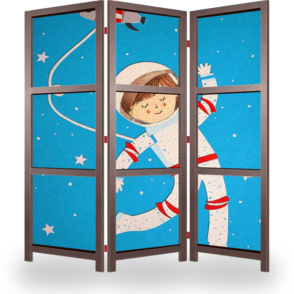 Описание ширмы Юный космонавт впервые вышел в открытый космос. Серия постеров о космосе внесут хорошее настроение в детскую комнату и придадут изюминку интерьеру