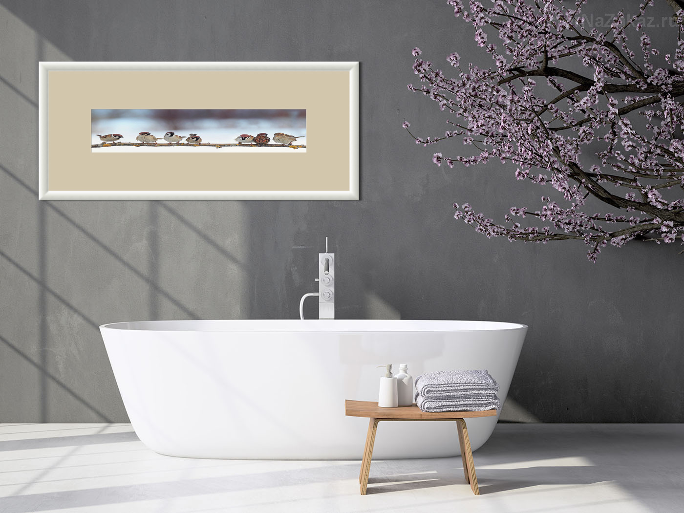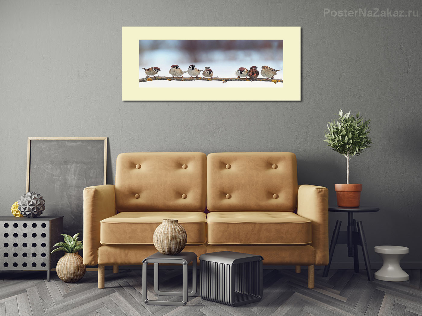 Описание ширмы панорамное фото с много маленьких забавных птиц и птенцов воробьи сидят на ветке в саду