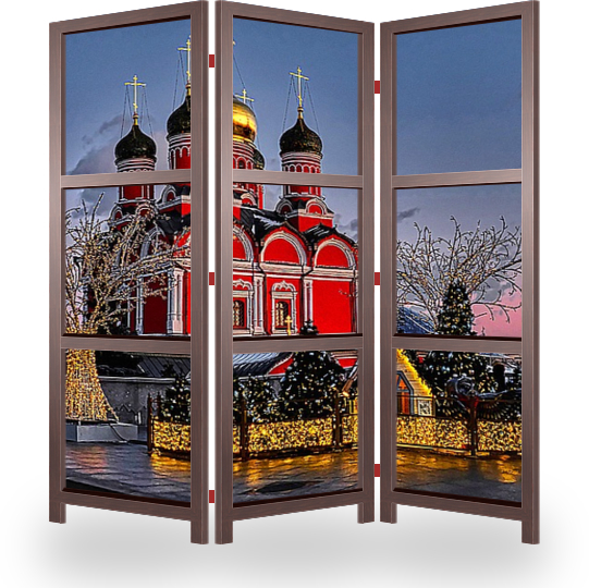 Описание ширмы Уникальные виды вечерних огней Парка Зарядье. Хоровод огней, сверкающая иллюминация создают праздничное, радостное настроение. Уникальная световая инсталляция радует зрителей всего один раз в год.
