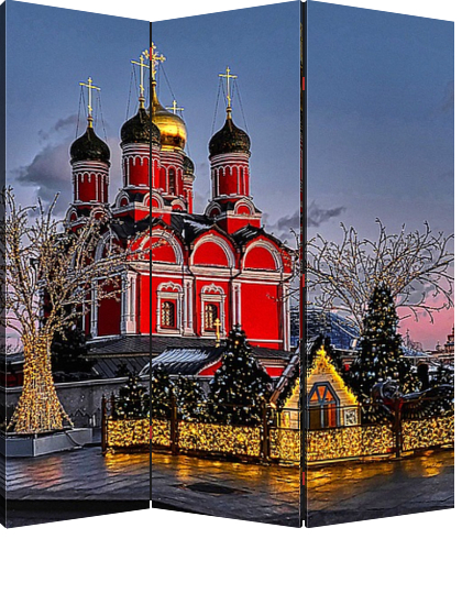 Описание ширмы Уникальные виды вечерних огней Парка Зарядье. Хоровод огней, сверкающая иллюминация создают праздничное, радостное настроение. Уникальная световая инсталляция радует зрителей всего один раз в год.