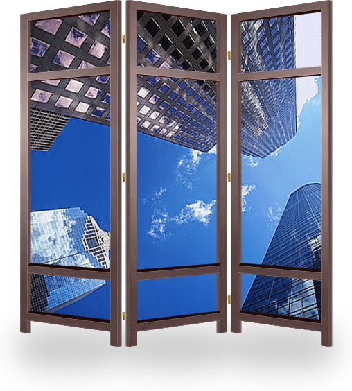 Ширма эконом отлично подойдет для временного размещения, рекламы, для отгораживания объектов интерьера и его дополнения. Лицевая сторона с изображением, обратная сторона открытый каркас