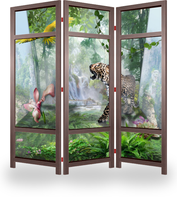 Ширма эконом отлично подойдет для временного размещения, рекламы, для отгораживания объектов интерьера и его дополнения. Лицевая сторона с изображением, обратная сторона открытый каркас
