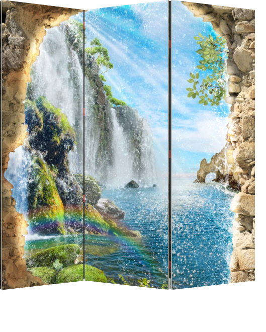 Ширма эконом отлично подойдет для временного размещения, рекламы, для отгораживания объектов интерьера и его дополнения. Лицевая сторона с изображением, обратная сторона открытый каркас