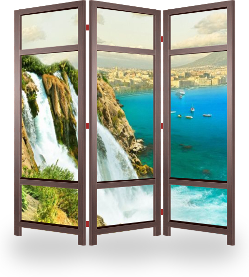 Ширма эконом отлично подойдет для временного размещения, рекламы, для отгораживания объектов интерьера и его дополнения. Лицевая сторона с изображением, обратная сторона открытый каркас