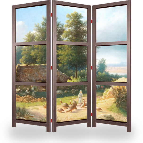 Ширма эконом отлично подойдет для временного размещения, рекламы, для отгораживания объектов интерьера и его дополнения. Лицевая сторона с изображением, обратная сторона открытый каркас