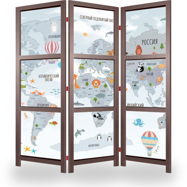 Ширма эконом отлично подойдет для временного размещения, рекламы, для отгораживания объектов интерьера и его дополнения. Лицевая сторона с изображением, обратная сторона открытый каркас