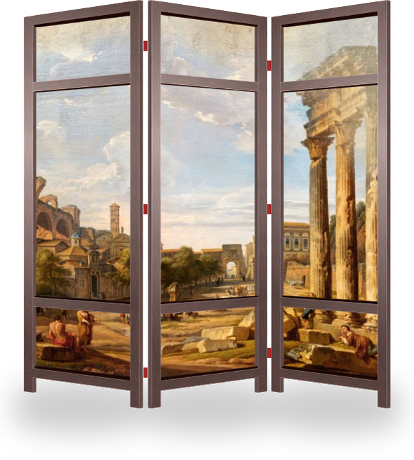 Ширма эконом отлично подойдет для временного размещения, рекламы, для отгораживания объектов интерьера и его дополнения. Лицевая сторона с изображением, обратная сторона открытый каркас