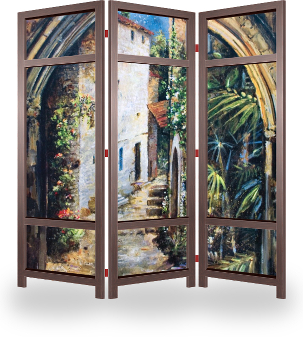 Ширма эконом отлично подойдет для временного размещения, рекламы, для отгораживания объектов интерьера и его дополнения. Лицевая сторона с изображением, обратная сторона открытый каркас