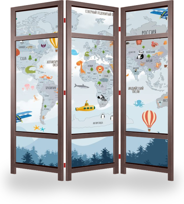 Ширма эконом отлично подойдет для временного размещения, рекламы, для отгораживания объектов интерьера и его дополнения. Лицевая сторона с изображением, обратная сторона открытый каркас