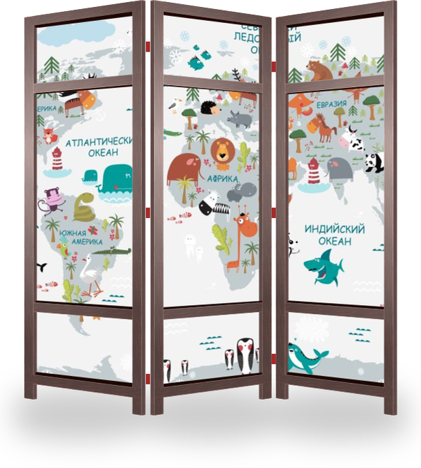 Ширма эконом отлично подойдет для временного размещения, рекламы, для отгораживания объектов интерьера и его дополнения. Лицевая сторона с изображением, обратная сторона открытый каркас