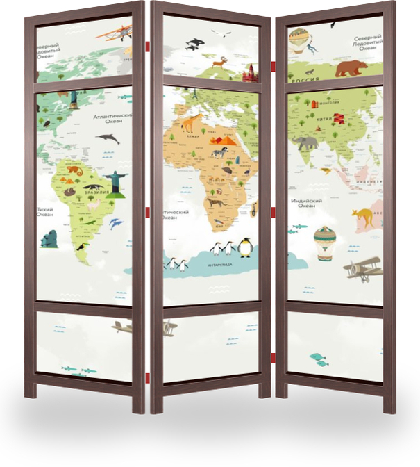 Ширма эконом отлично подойдет для временного размещения, рекламы, для отгораживания объектов интерьера и его дополнения. Лицевая сторона с изображением, обратная сторона открытый каркас
