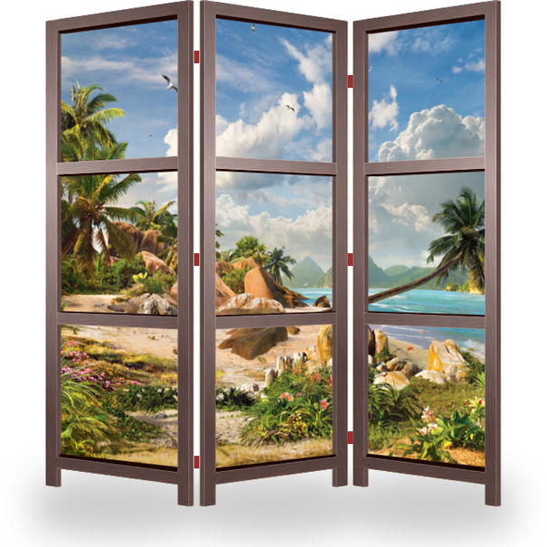 Ширма эконом отлично подойдет для временного размещения, рекламы, для отгораживания объектов интерьера и его дополнения. Лицевая сторона с изображением, обратная сторона открытый каркас