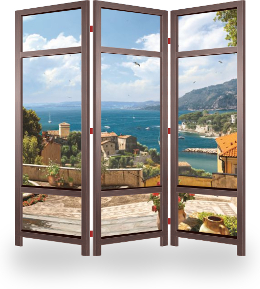 Ширма эконом отлично подойдет для временного размещения, рекламы, для отгораживания объектов интерьера и его дополнения. Лицевая сторона с изображением, обратная сторона открытый каркас
