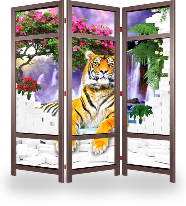 Ширма эконом отлично подойдет для временного размещения, рекламы, для отгораживания объектов интерьера и его дополнения. Лицевая сторона с изображением, обратная сторона открытый каркас