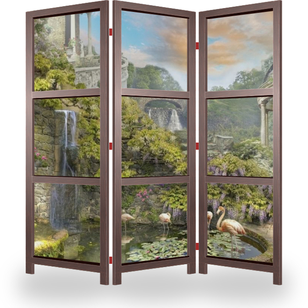 Ширма эконом отлично подойдет для временного размещения, рекламы, для отгораживания объектов интерьера и его дополнения. Лицевая сторона с изображением, обратная сторона открытый каркас