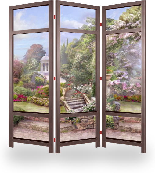 Ширма эконом отлично подойдет для временного размещения, рекламы, для отгораживания объектов интерьера и его дополнения. Лицевая сторона с изображением, обратная сторона открытый каркас