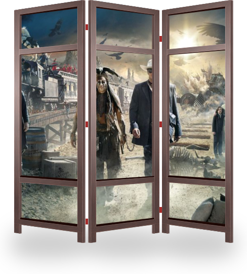 Ширма эконом отлично подойдет для временного размещения, рекламы, для отгораживания объектов интерьера и его дополнения. Лицевая сторона с изображением, обратная сторона открытый каркас
