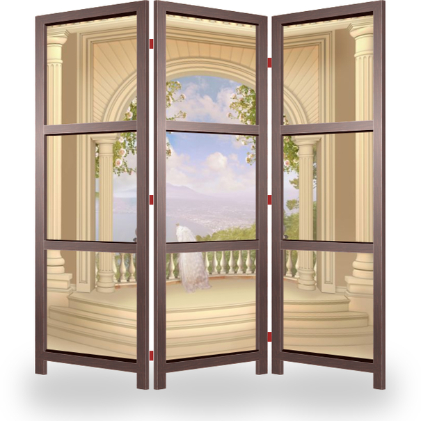 Ширма эконом отлично подойдет для временного размещения, рекламы, для отгораживания объектов интерьера и его дополнения. Лицевая сторона с изображением, обратная сторона открытый каркас